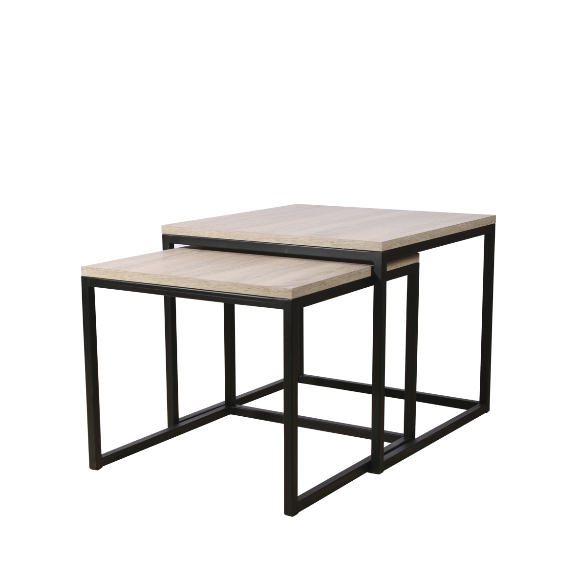 Conjunto de mesas auxiliares tipo nido encajables con tapa de melamina. Se realiza a medida en diferentes acabados de melamina y metal. Tapa de melamina de 20 mm.